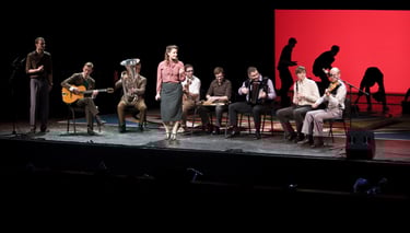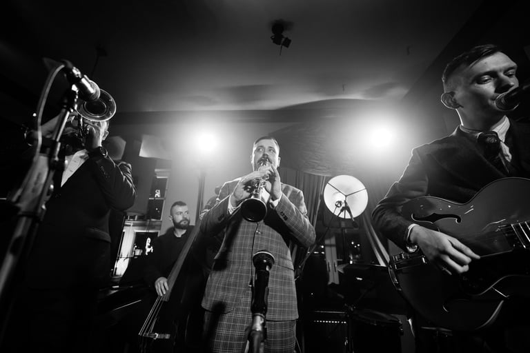 Pro sunkias rūsio duris prasiskverbia tylus trimito tonas. Tai slaptas baras, paskendęs damų cigarilių dūmuose, intymiuose pokalbiuose. Ant scenos lėtais grybšniais kontrabosininkas kontroliuoja susirinkusiųjų pulsą. O ritmingi gitaristo mostai ir intensyvus lėkščių aidas kviečia už purpurinių satino užuolaidų. Šokių aikštelėje baro gilumoje šėlsta suprakaitavusios poros. Kostiumuoti vyrai ir damos raudonomis lūpomis sukasi pagal klarnetininko viražus.