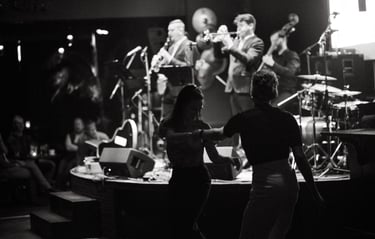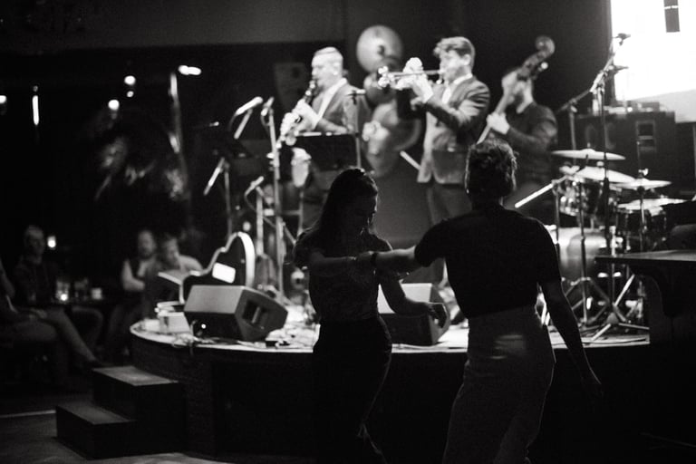 Rhythm Junkies sielose ir širdyse - kaukiantys, šaukiantys, trypiantys ir klykiantys, magiškieji 1930-1940 metai Amerikoje, o kol neišrasta laiko mašina, ten keliaujame muzikos, ritmo bei šokio pagalba.